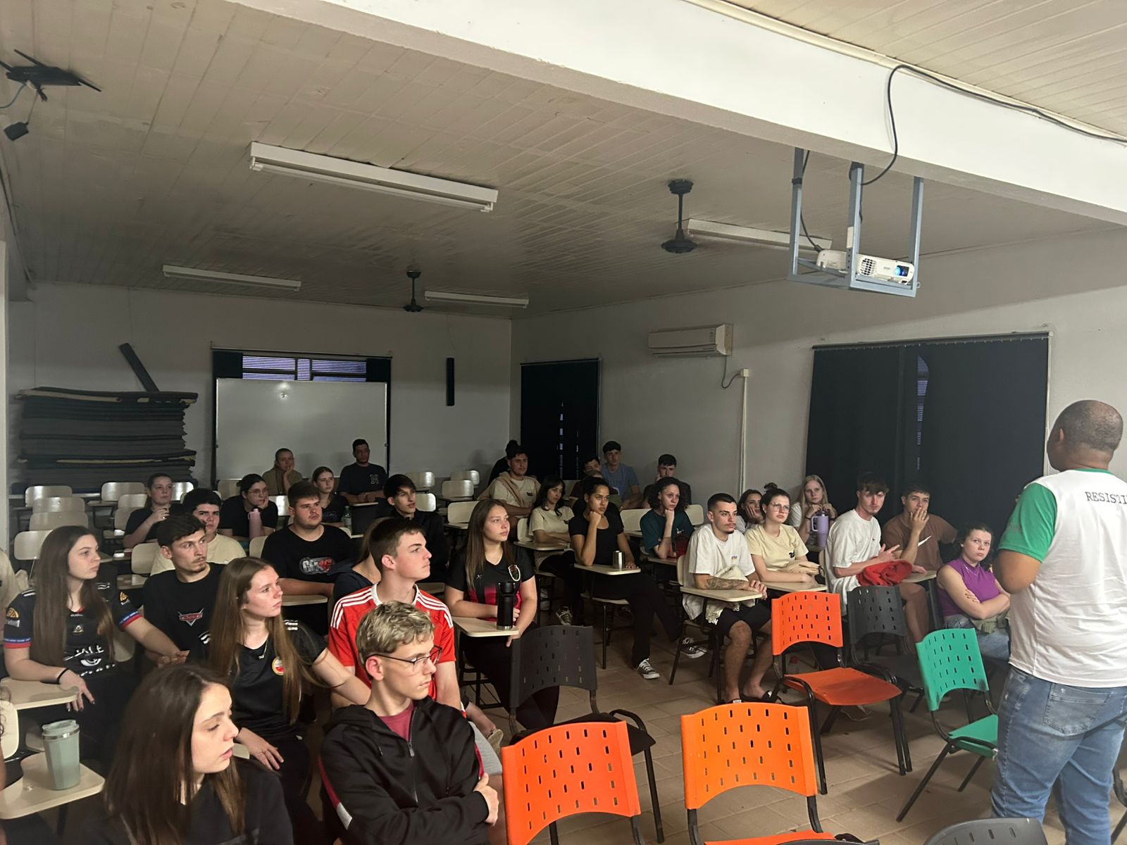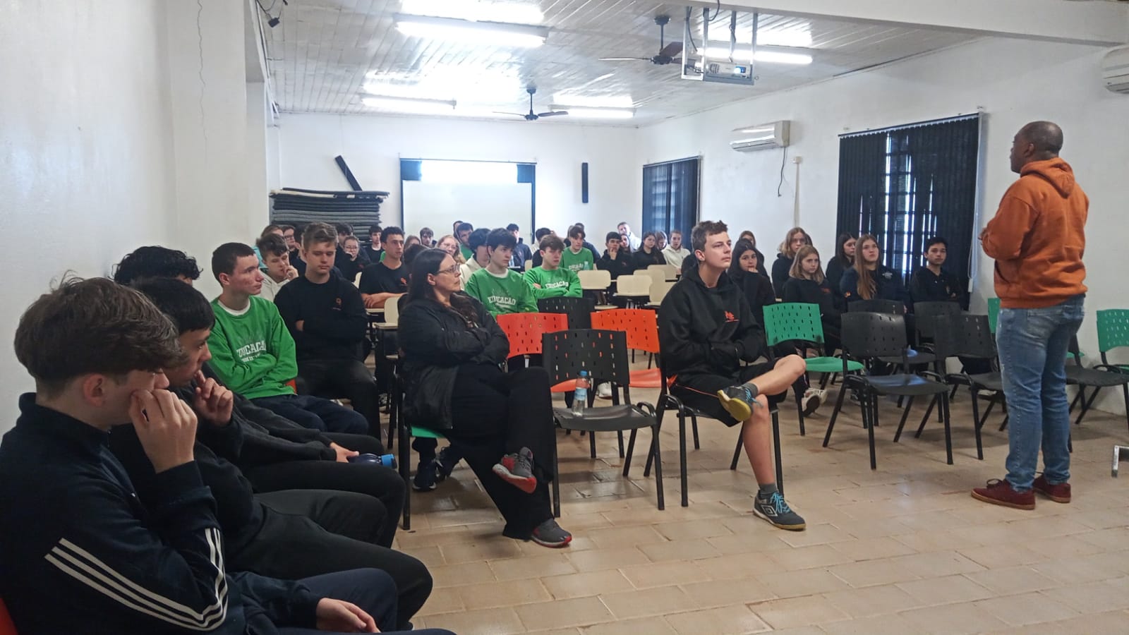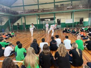 No dia 17/11, os alunos de todos os turnos de aula tiveram a oportunidade de interagir na atividade integrativa de Capoeira, que teve como objetivo promover a integração social, o respeito às regras e ao coletivo, desenvolvendo habilidades motoras, trabalho em equipe, cooperação e espírito esportivo. Os professores capoeirista que estiveram presentes realizando a atividade foram: Mestre Adair Pereira, Joel Berg, Marcos Petri, Mauricio Clok, Ronaldo Portes de Morais