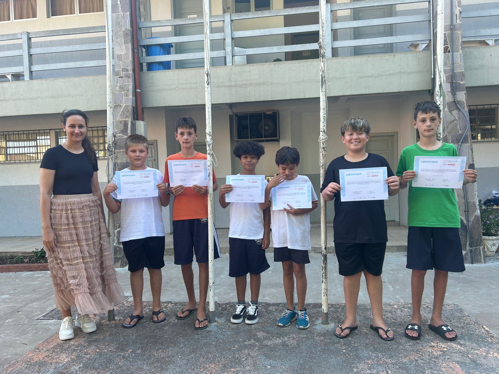 Prof. Edna, Eduardo (ouro) Caio (prata) David (prata) Pietro (prata) Thalles (bronze) Breno (bronze).