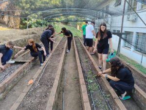 Atividades práticas com a Profª Danielle Bauer -3 Published 19 de março de 2026 Atividades realizadas no Projeto Horta Escolar com a turma 101 do EMTI: