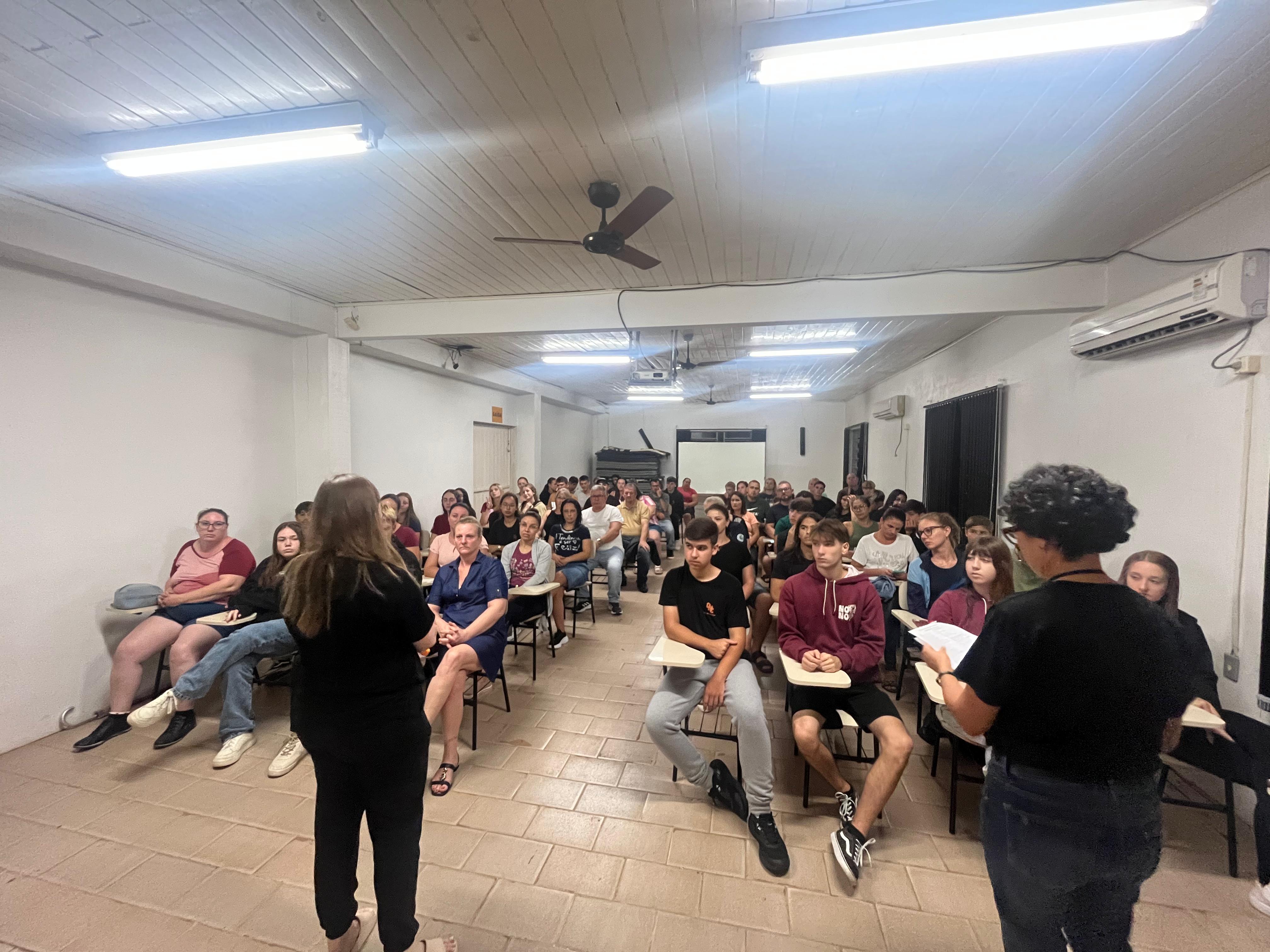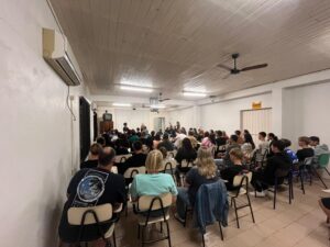 Na noite do dia 24-02-2026, aconteceu a primeira reunião do ano letivo da turma 103, com a presença dos pais/responsáveis, alunos, equipe diretiva e professores. A vice diretora Sandra deu as boas vindas a todos e na sequência solicitou que os pais participassem lendo uma mensagem referente aos sucesso escolar. O Ensino Médio é uma nova etapa e requer foco e dedicação, por isso a parceria/colaboração das famílias é tão importante. Os professores também puderam conversar sobre sua disciplina e como será desenvolvida durante o ano. E para finalizar foram repassadas as regras de convivência que são específicas para o noturno.